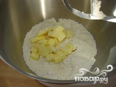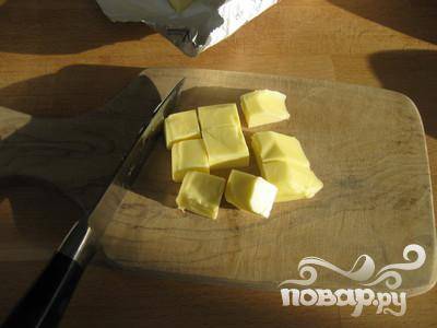 Порежьте масло на кубики. Оно должно быть комнатной температуры, если оно только из холодильника, то отложите на 20 минут при комнатной температуре.