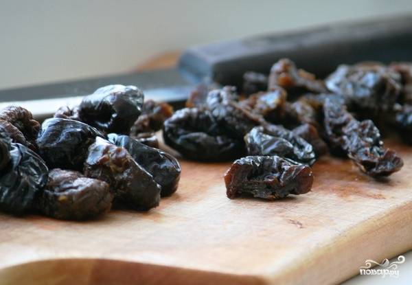И - еще на 20 минут в духовку при той же температуре. Тем временем чернослив нарежем на половинки.