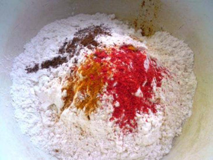 - Острые приправы По вкусу чили, карри, черный перец: тесто