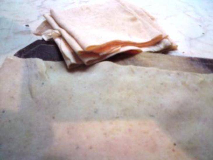 Замесить крутое тесто из муки, воды, масла. Разделить пополам и оставить на 15 минут.