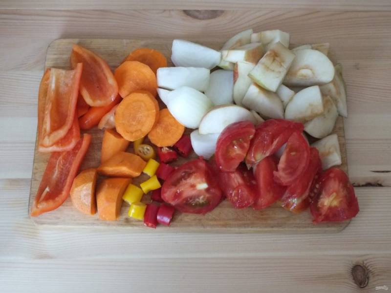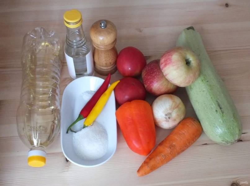 Овощи измельчите в блендере или в мясорубке. Перелейте в кастрюлю с толстым дном. Добавьте сахар, соль, черный перец, масло растительное и поставьте на огонь чуть ниже среднего. Проварите после закипания 25 минут.