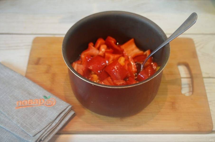 1. Сладкий перец нарежьте кубиком, острый - тонкими колечками.