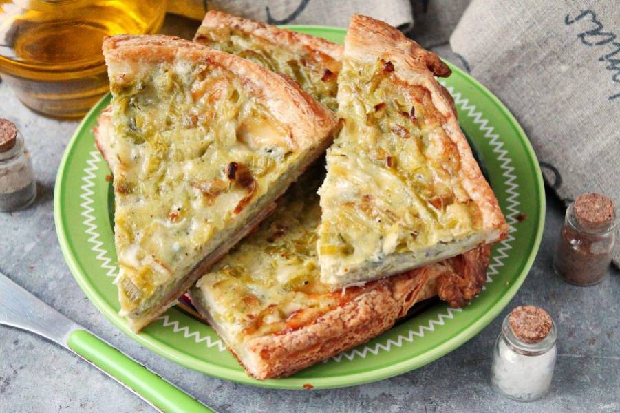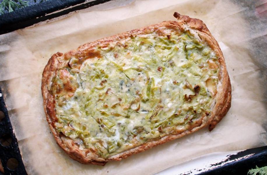 Предлагаю приготовить пикантный и довольно не сложный пирог, которым можно удивить гостей и родных. На хрустящей основе из слоеного теста нежная, пикантная сырная начинка с луком-пореем. Берите идею!
