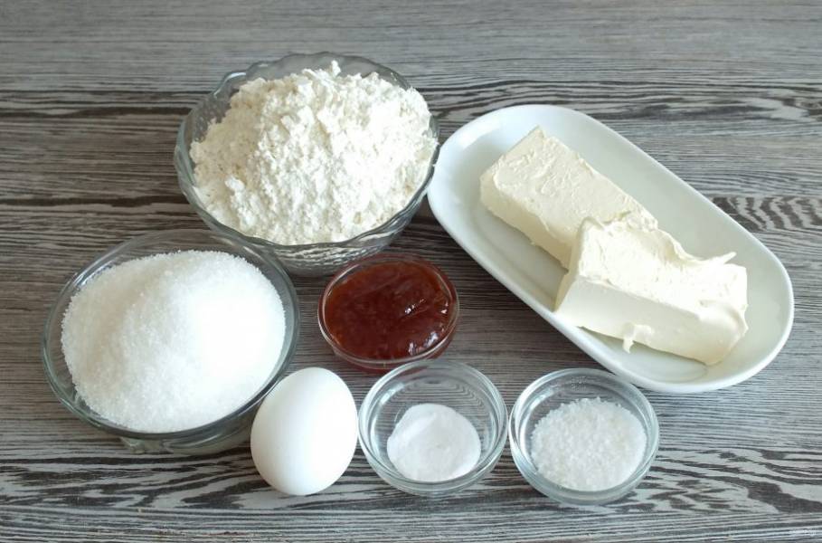 В середину каждой заготовки отсадите густой джем (повидло). Достаточно небольшой капельки. Противень с печеньем поставьте в разогретую до 180 градусов духовку на 7-10 минут. Учитывайте особенности своей духовки.
