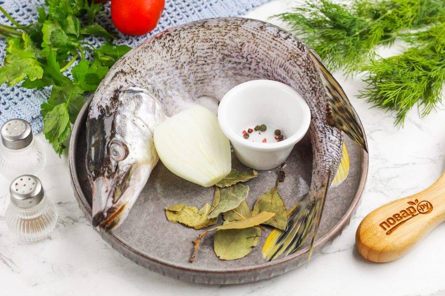 Подготовьте указанные продукты. Щуку очистите от чешуи и внутренностей, промойте в воде внутри и снаружи. Очистите луковицу и промойте. Если лук крупный, то используйте половину овоща.
