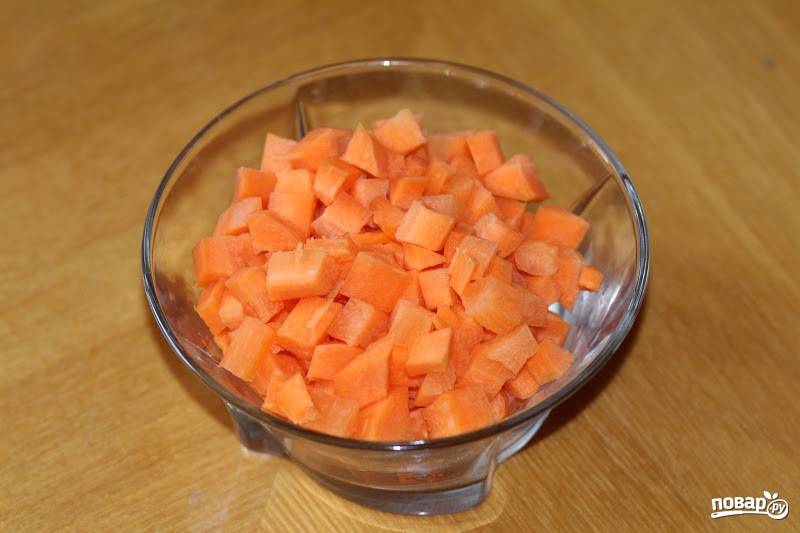 1. Подготавливаю все овощи, мою и очищаю их, нарезаю все мелким кубиком и раскладываю по мискам, не смешиваю.