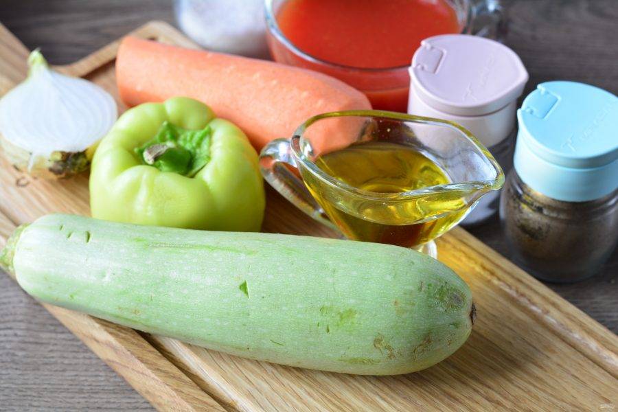 Овощи прекрасно сочетаются с томатным соусом и блюдо получается очень сочным и вкусным. Подается в горячем виде как самостоятельно, так и с любым гарниром — каши или макаронные изделия.