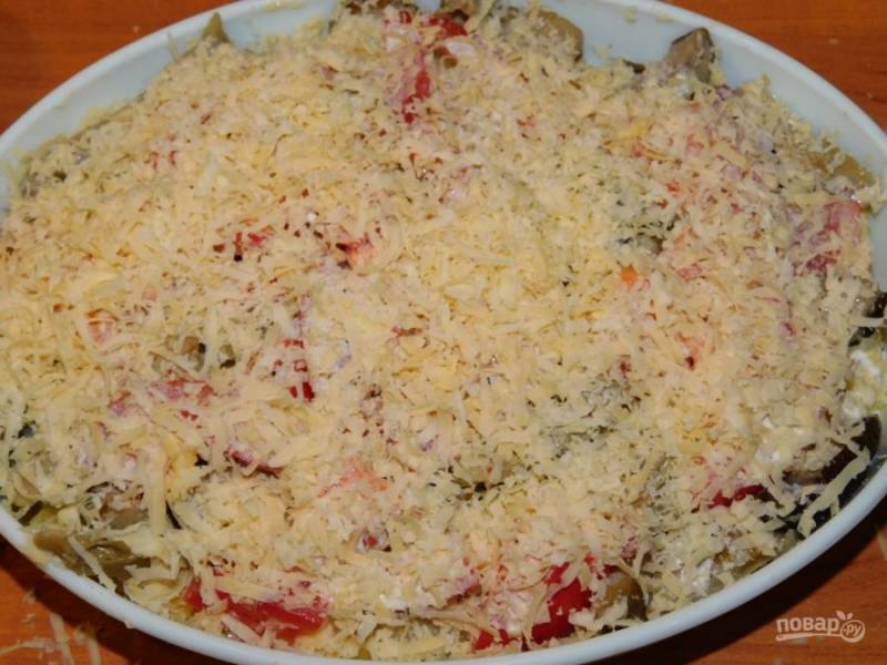 Сверху посыпьте тертым сыром. Поставьте в духовку, разогретую до 200 градусов на 30-40 минут.