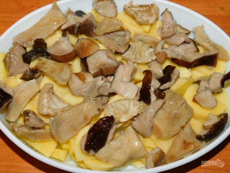 Запеканка из куриного филе с картошкой, грибами и сыром