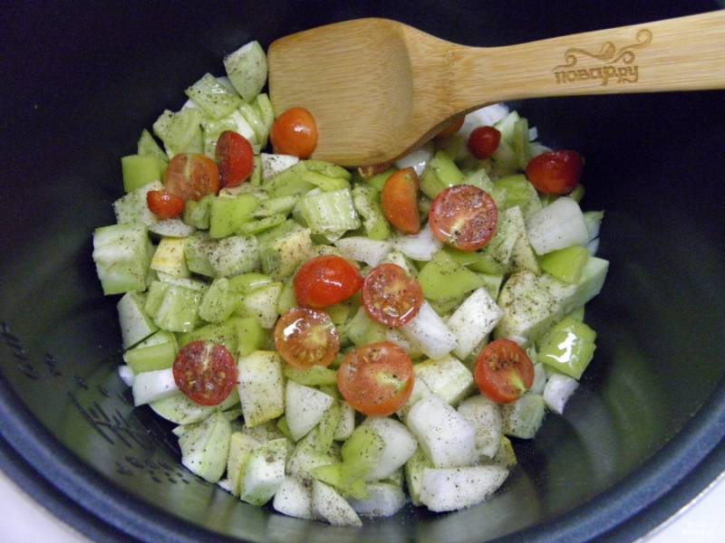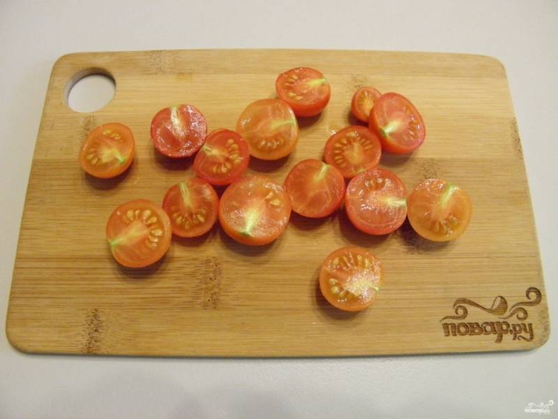 Помидоры, если у вас мелкие, порежьте половинками, а если крупные - на 6-8 частей.