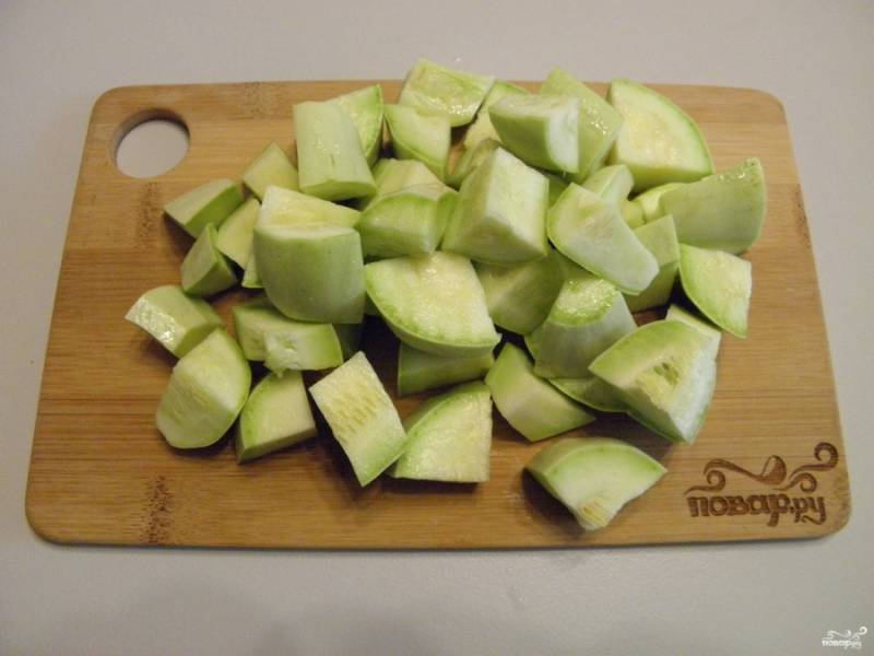Вымойте кабачки, срежьте у них хвостики. Порежьте овощи крупными кусочками.