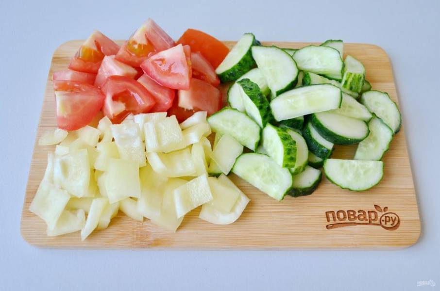 1. Подготовьте овощи, тщательно вымойте, у перца удалите семена. Обычный уксус можно заменить рисовым, яблочным или винным.