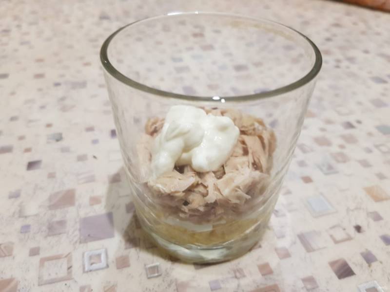 Последний слой - натёртый сыр. Выложите его сверху и уберите салат в холодильник минут на 30 для пропитывания. А потом можно звать гостей к столу!