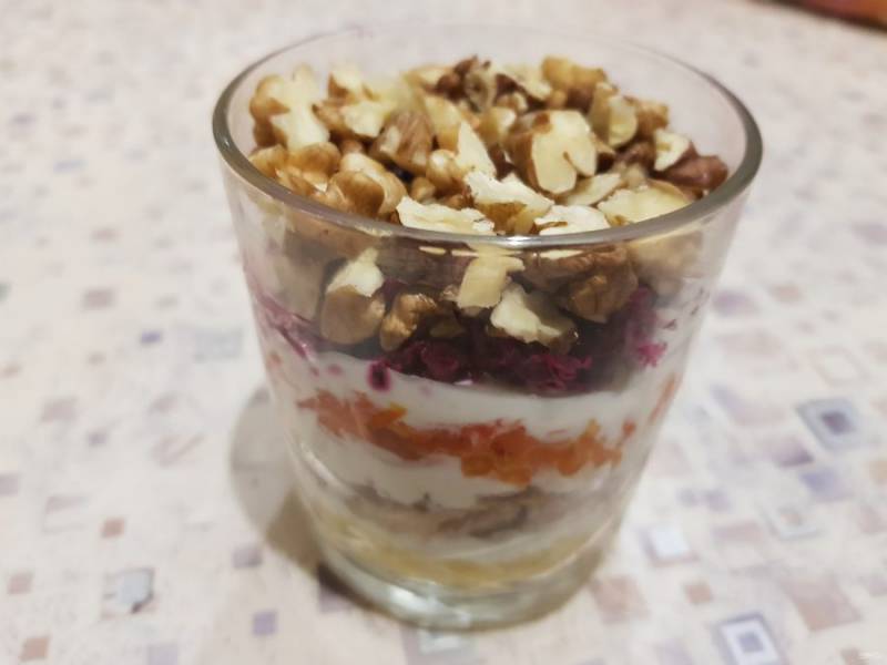 Далее добавьте порубленные орехи.