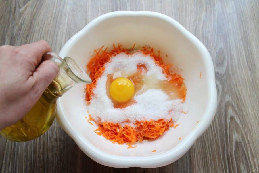 Влейте в миску растительное масло и все хорошенько перемешайте до однородной массы без комочков.