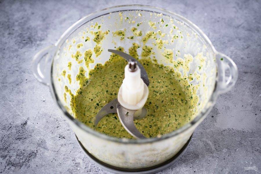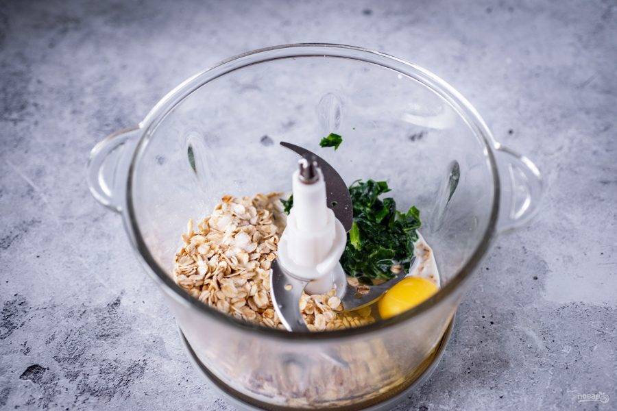 Запустите устройство примерно на 1 минуту. В итоге должно получиться овсяно-шпинатное тесто по густоте подобное жирной сметане.