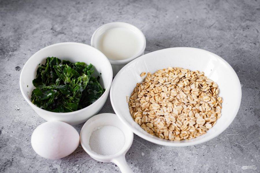 В чашу блендера выложите все ингредиенты: молоко, хлопья, яйцо, соль, шпинат.