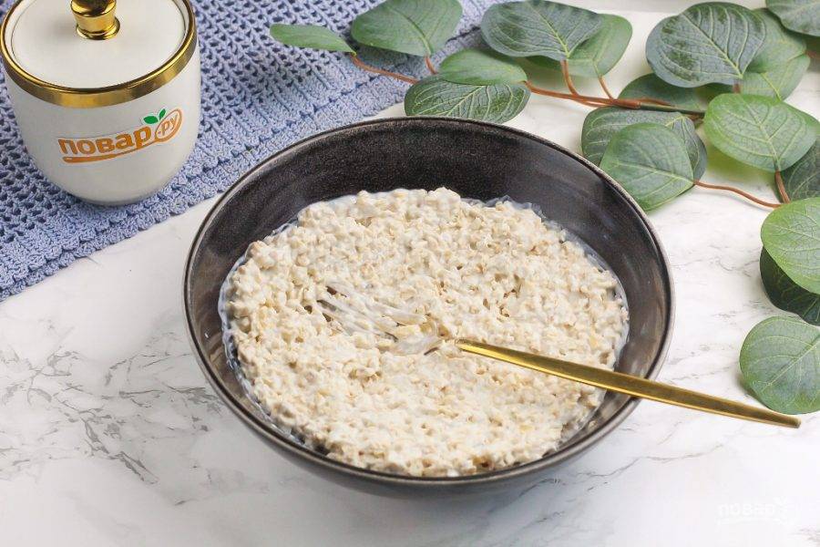 Оставьте хлопья в жидкости примерно на 15-20 минут, за это время они отлично набухнут и впитают жидкость в себя.