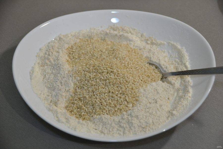 Перемешайте все сухие ингредиенты до однородности, добавьте щепотку соли.