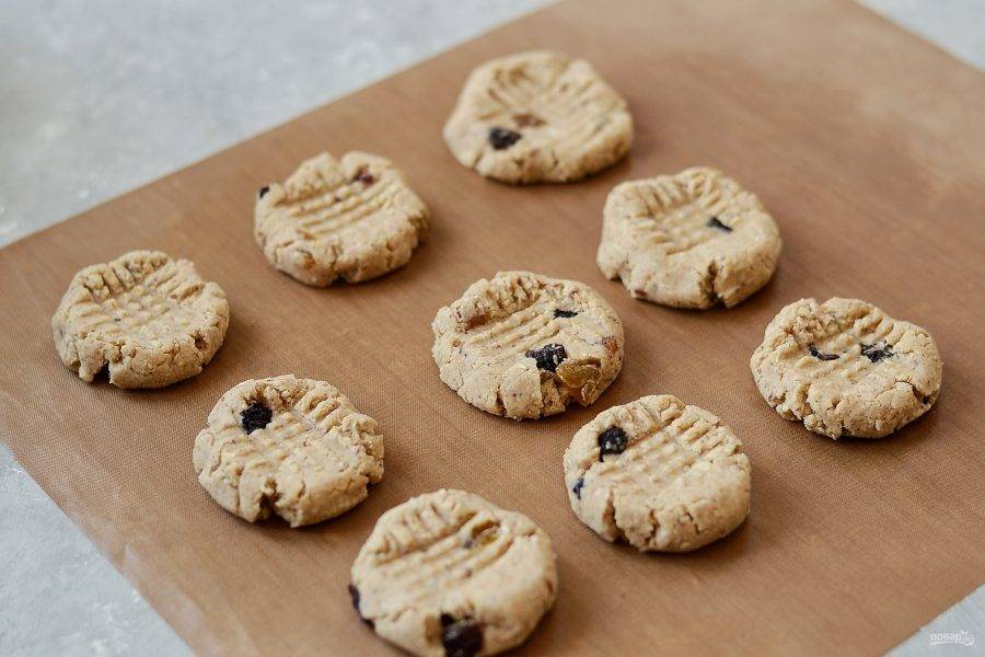Придавите каждый вилкой крест-накрест. Выпекайте печенье 20-25 минут при температуре 180 градусов.