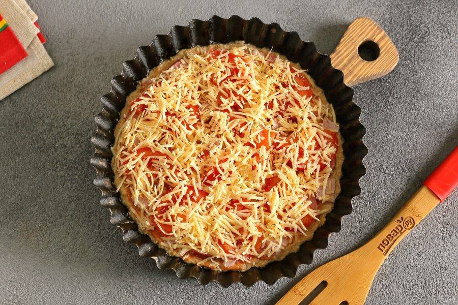 Готовую пиццу на овсяном тесте нарежьте на порции и сразу подавайте к столу. Приятного аппетита!