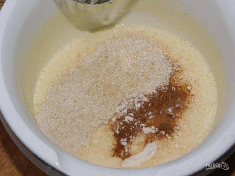 Яблоки очистите, натрите на терке и добавьте в тесто.