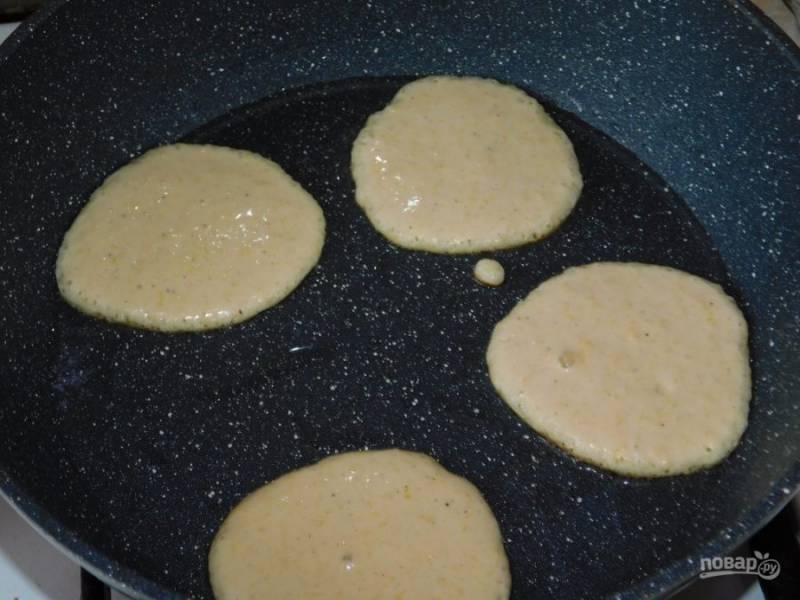 Выкладывайте ложкой немного теста на горячую сковороду и обжаривайте с двух сторон.