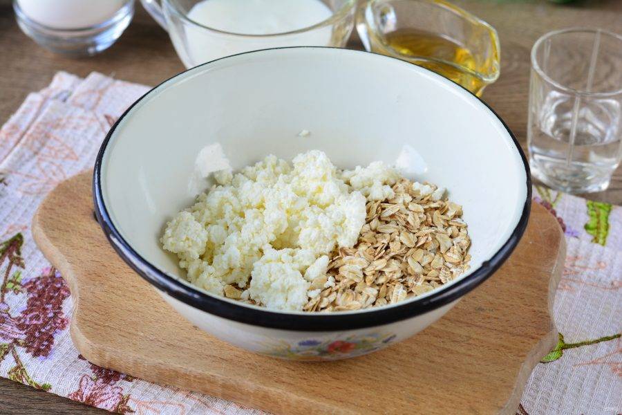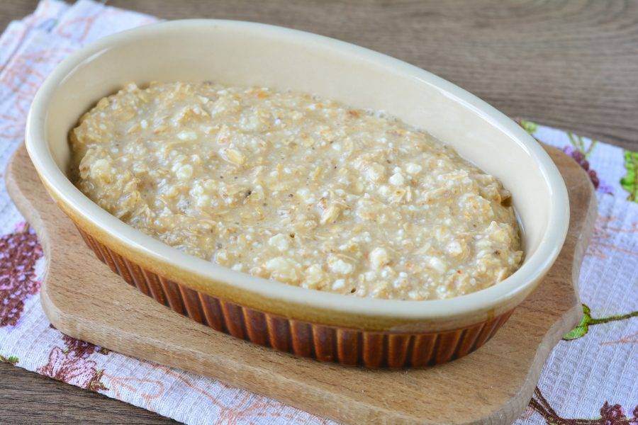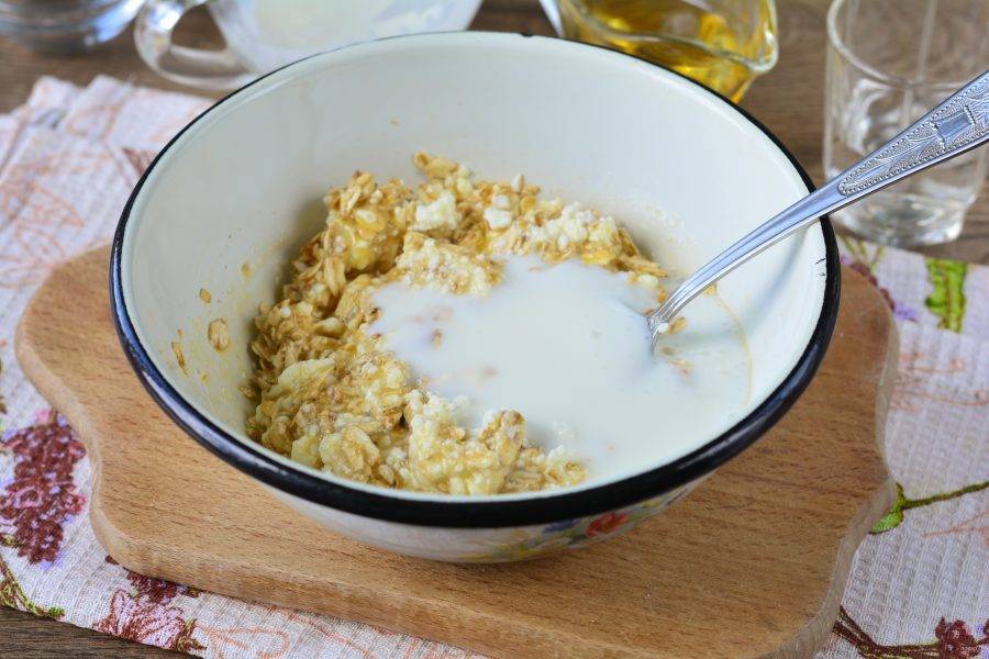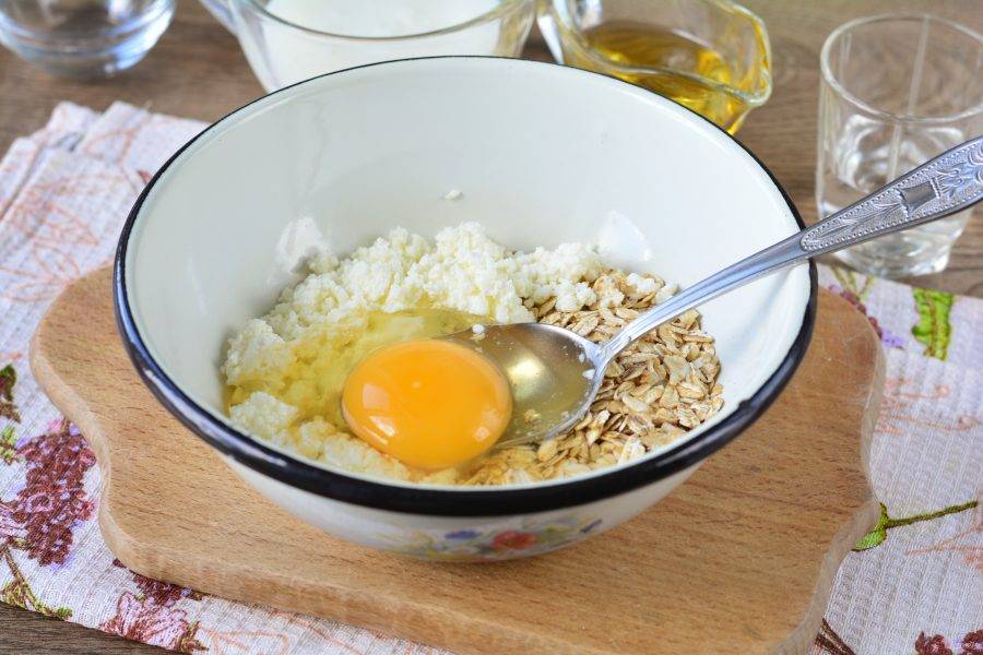 Вбейте куриное яйцо и размешайте. Хлопья начнут набухать.