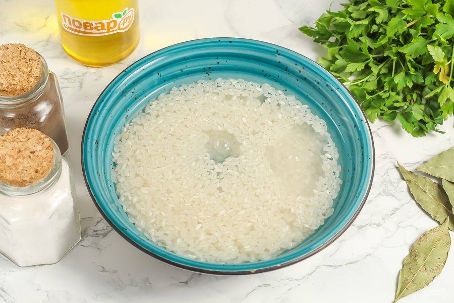 Рис промойте в холодной воде несколько раз, вымывая крахмал.