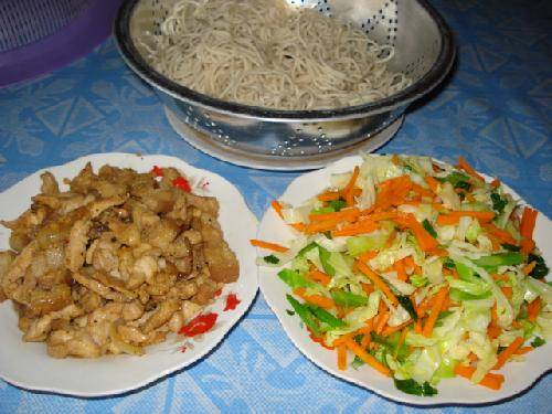 Накладываем овощи поверх лапши и мяса. Блюдо готово. Приятного аппетита!