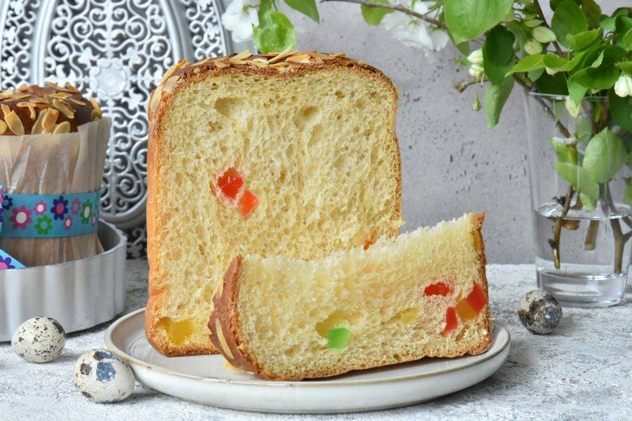 Готовой выпечке необходимо дать остыть и извлечь ее из формы. Как правило панеттоне не требуют дополнительного украшения, но я перед выпечкой присыпала верхушки небольшим количеством миндальных лепестков.