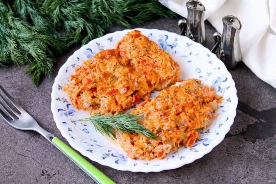 Простое, но очень вкусное рыбное блюдо с овощами. За счет запекания со сметаной и сыром получается нежная и сочная рыбка. Берите рецепт на вооружение!