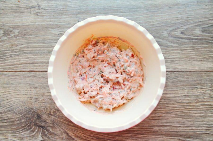 Все посолите, поперчите и смешайте со сметаной и паприкой.