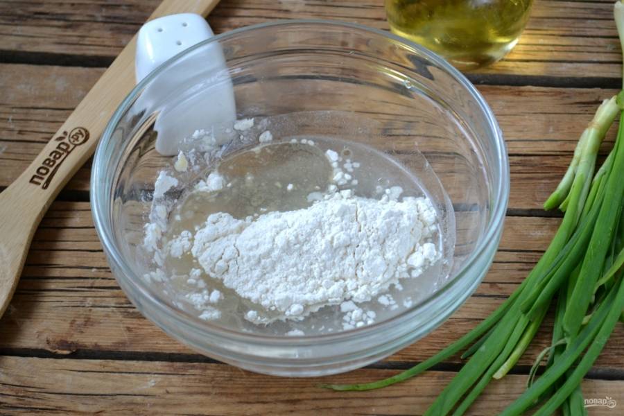 В теплой воде растворите соль и растительное масло. Как видите, соли достаточно много, лепешки получатся достаточно солеными, но в этом их "фишка".