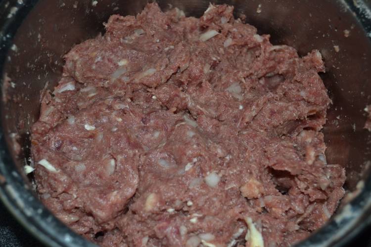 Теперь мы измельчаем мясо либо при помощи блендера, либо несколько раз пропускаем его через мясорубку.