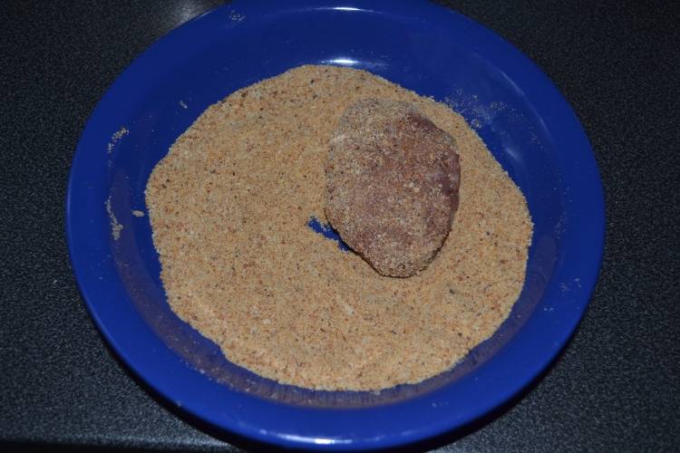 Мокрыми руками начинаем лепить из фарша котлеты и обваливаем каждую в панировочных сухарях.