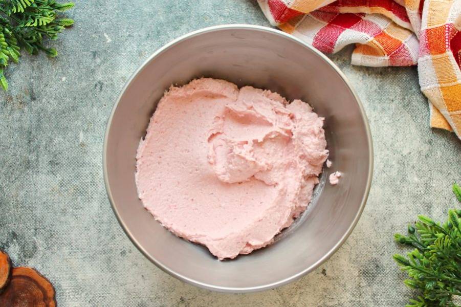 Добавьте к творогу половину остывшей начинки.