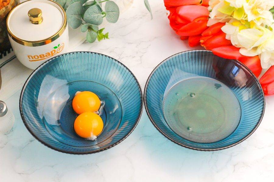 Разделите куриные яйца на желтки и белки, белки в этом рецепте не используются.