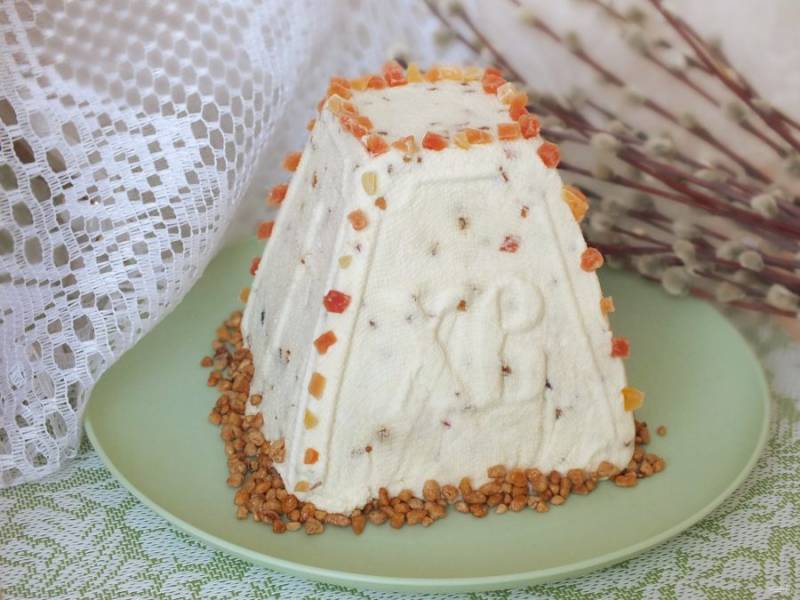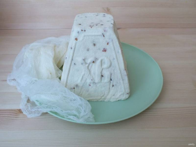 По истечении времени, извлеките пасху из формы, снимите марлю.