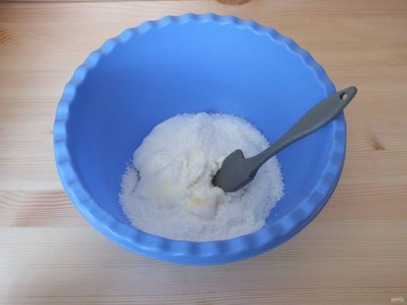 Творог пробейте погружным блендером до исчезновения крупинок или протрите через мелкое сито.