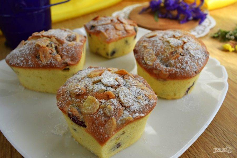 Выпекайте в разогретой духовке в течение 20-25 минут до сухой спички. Ориентируйтесь по своей духовке. Остудите кексы. По желанию присыпьте сахарной пудрой.