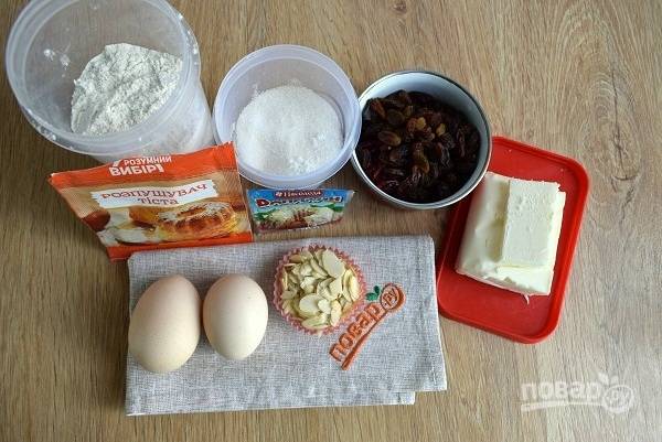 Подготовьте необходимые продукты. Масло заранее достаньте из холодильника, оно должно стать размягченным. Муку просейте. Клюкву предварительно залейте теплой водой на 15 минут, откиньте на сито, залейте коньяком на 30 минут, обсушите бумажным полотенцем. Ее желательно подготовить до того, как приступать к выпечке кексов.