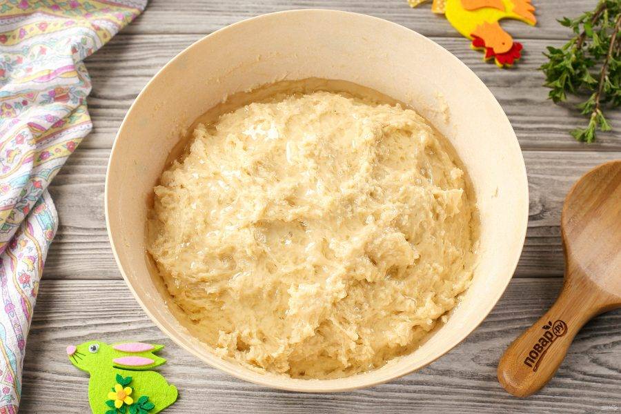 Тщательно вмешайте все ингредиенты в тесто руками, до однородного состояния и оставьте для подъёма ещё на 1 час.