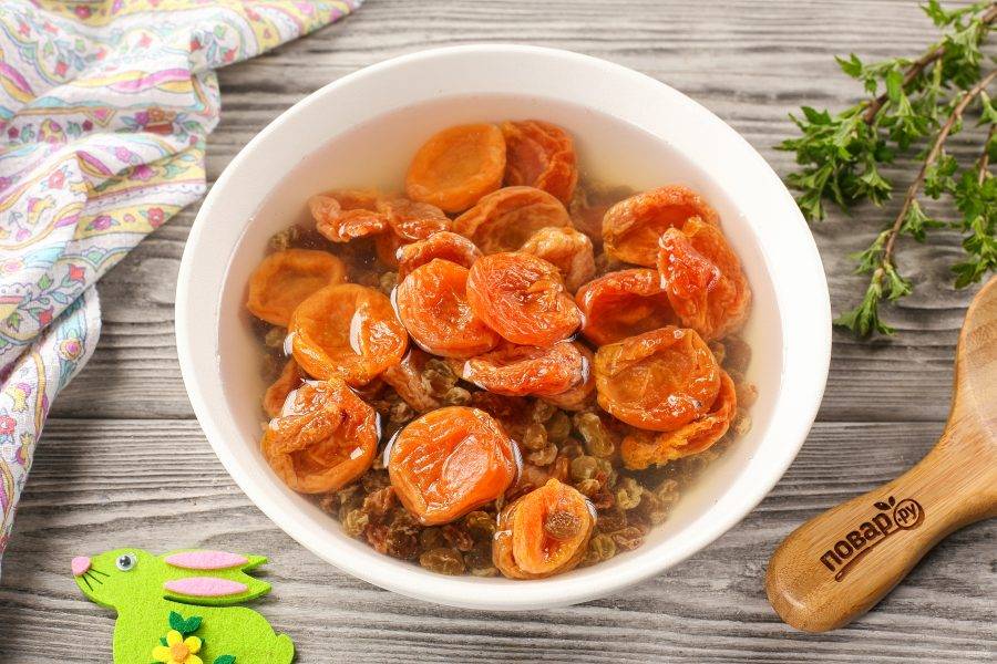 Пока тесто поднимается, залейте кипятком сухофрукты на 10-15 минут, затем промойте и обсушите.