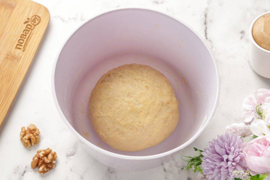 Вот такое оно получилось у меня. Оно должно быть мягкое и чуть липкое. Соберите его в шар, накройте и поставьте в тёплое место на час-полтора.