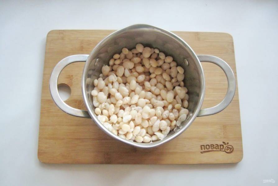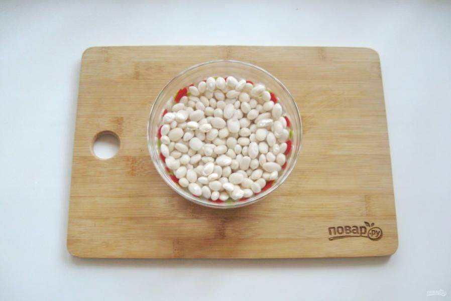 Фасоль хорошо помойте и замочите в кипяченой, холодной воде на несколько часов, а лучше на ночь.