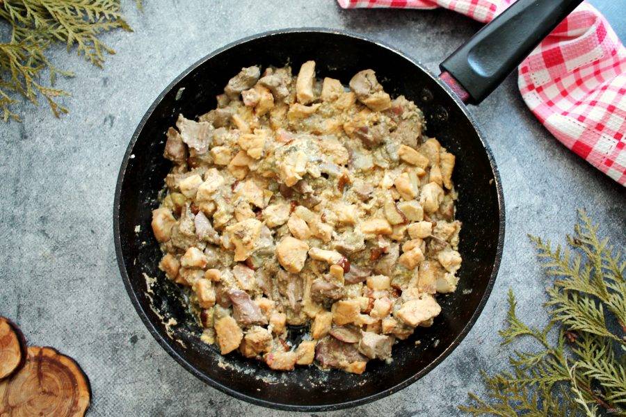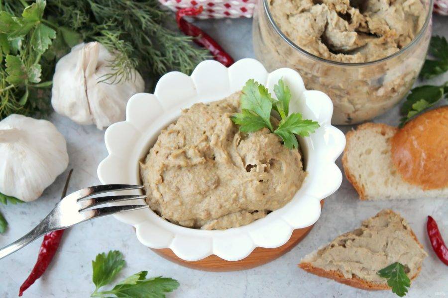 Переложите паштет в сковороду и прогрейте на медленном огне до желаемой консистенции. Готовый паштет снимите с огня, переложите в чистую, сухую посуду и уберите в холодильник после полного остывания.