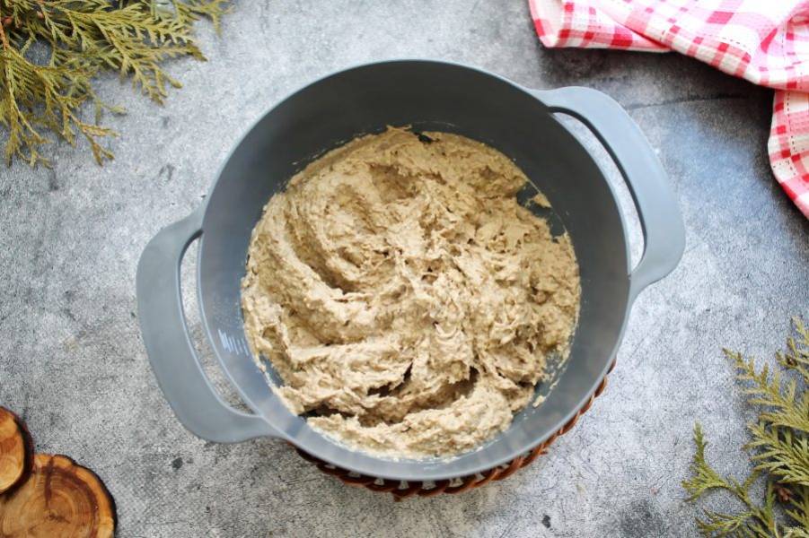 Пробейте готовую мясную массу блендром до однородности.