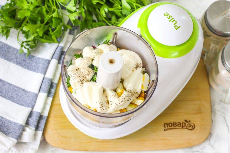 Измельчите все ингредиенты примерно 3-4 минуты на пульсирующем режиме техники.