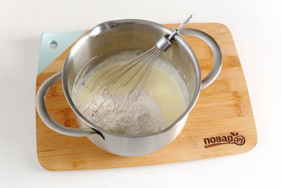 Добавьте муку, соду и 0.5 ч.л. соли.